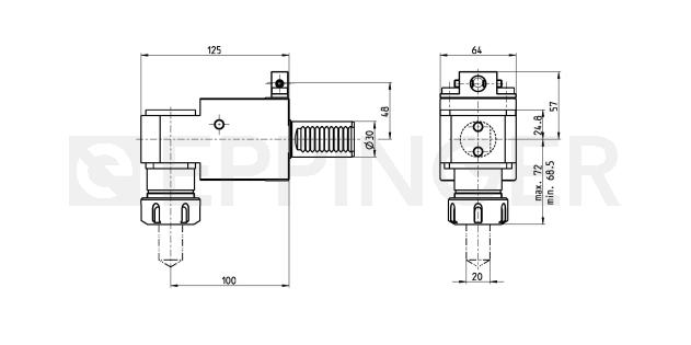 Drill holder, angular, right hand collet chuck, ER32, external and central coolant supply