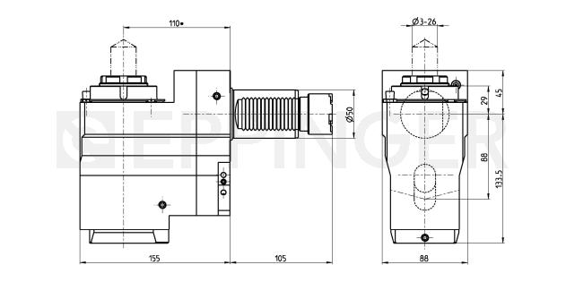 | 附件 | Collets see Equipment for Toolholders Z2.1 Sealing washers see Equipment for Toolholders Z4.1 Wrench for spindle 0.002.277, 10006 PRECI-FLEX® Adapter Spindle cover see P99.1 Spindle sealing see P99.1 Coolant tubes 0.000.378 |