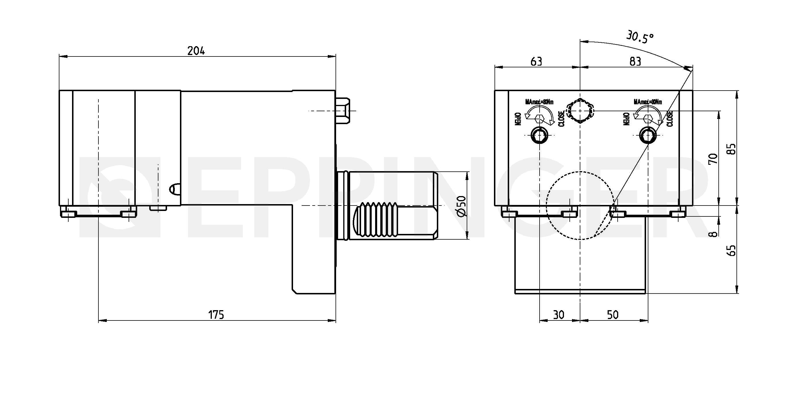 Tool holder, angular, multiple quick change, EPPINGER PSC 50, RH external and central coolant supply