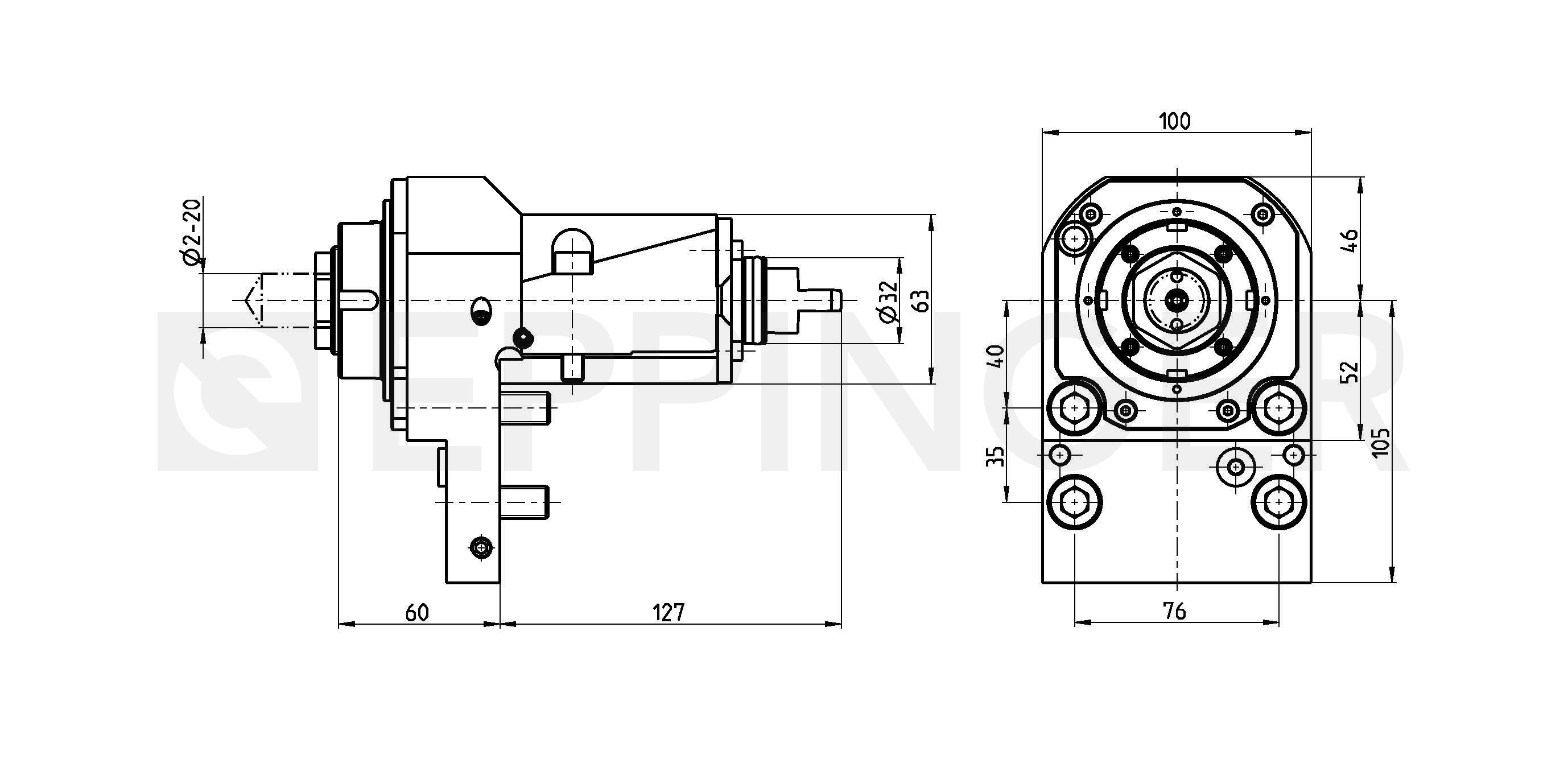 | Accessories | Collets see Equipment for Toolholders Z2.1 Sealing washers see Equipment for Toolholders Z4.1 Wrench for spindle 0.002.277 PRECI-FLEX® Adapter Spindle cover see P99.1 Spindle sealing see P99.1 Coolant tubes 0.000.378 |
