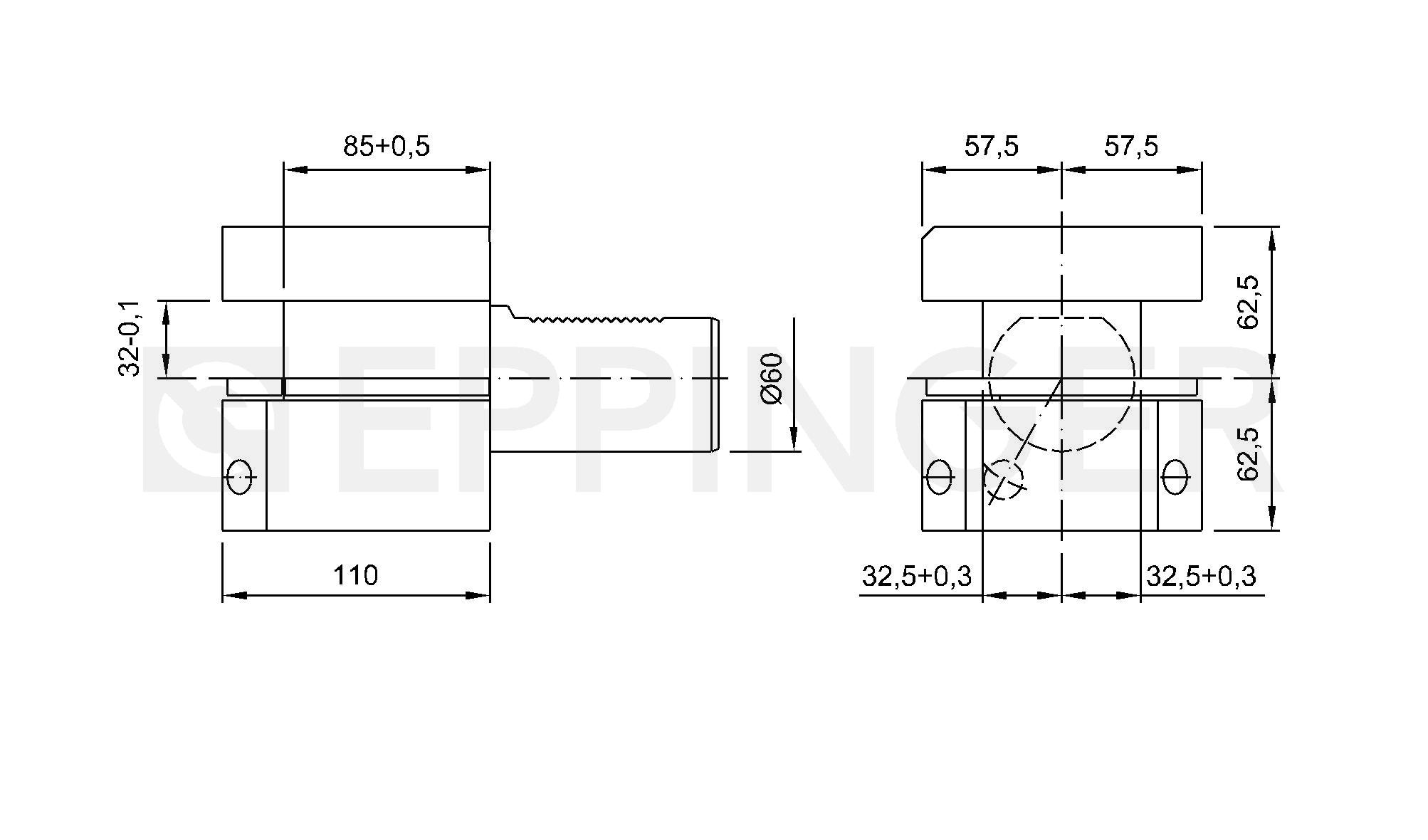 Rectangular tool holder with multiple seats, overhead, Type D2 DIN 69880-D2-60x32
