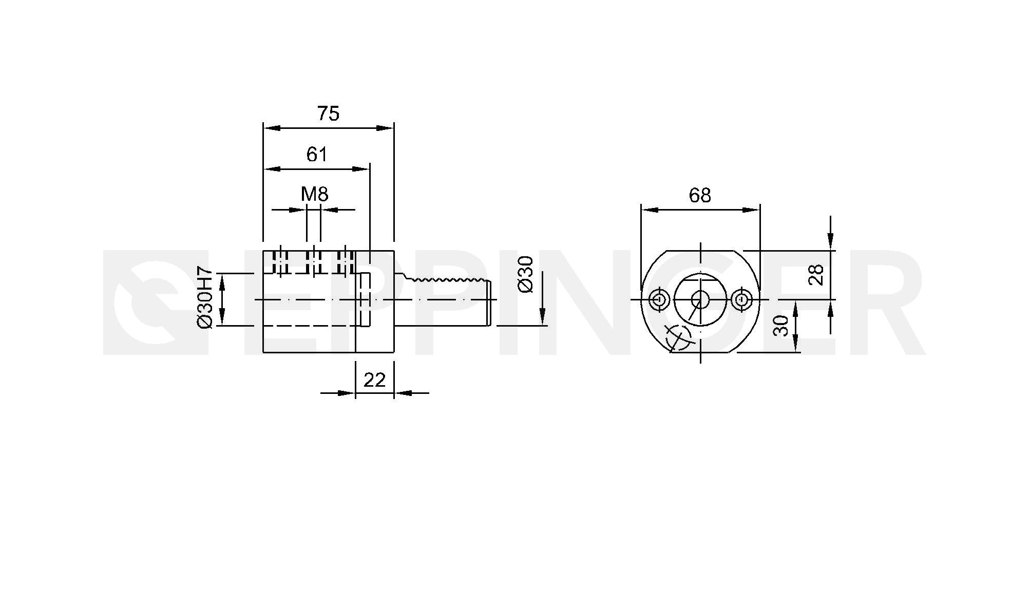 Boring bar holder DIN 69880-E2-30x30, Type E2 external and central coolant supply