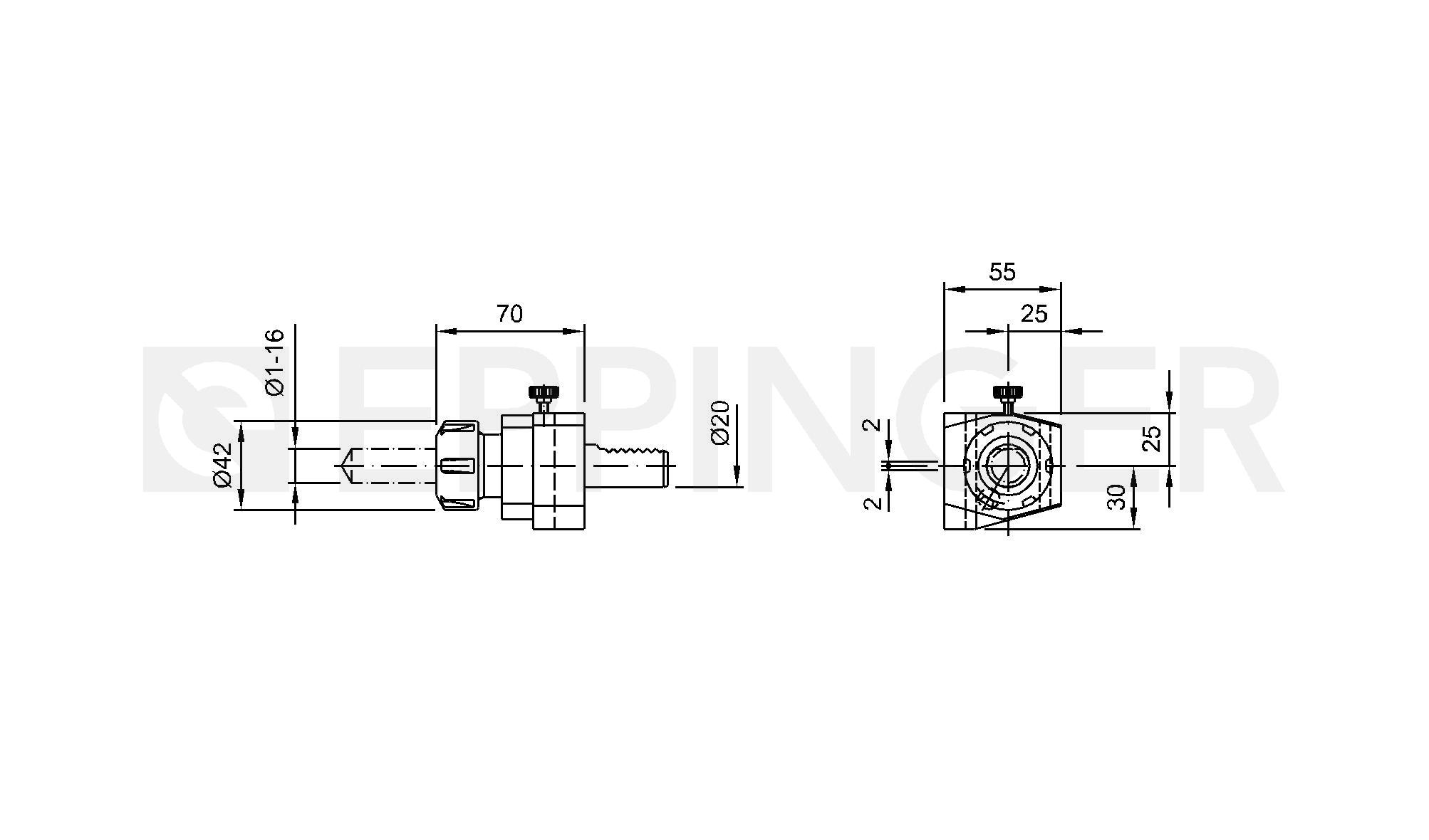 Collet chuck, straight, height adjustable ER25, for collets DIN 6499 Schaublin