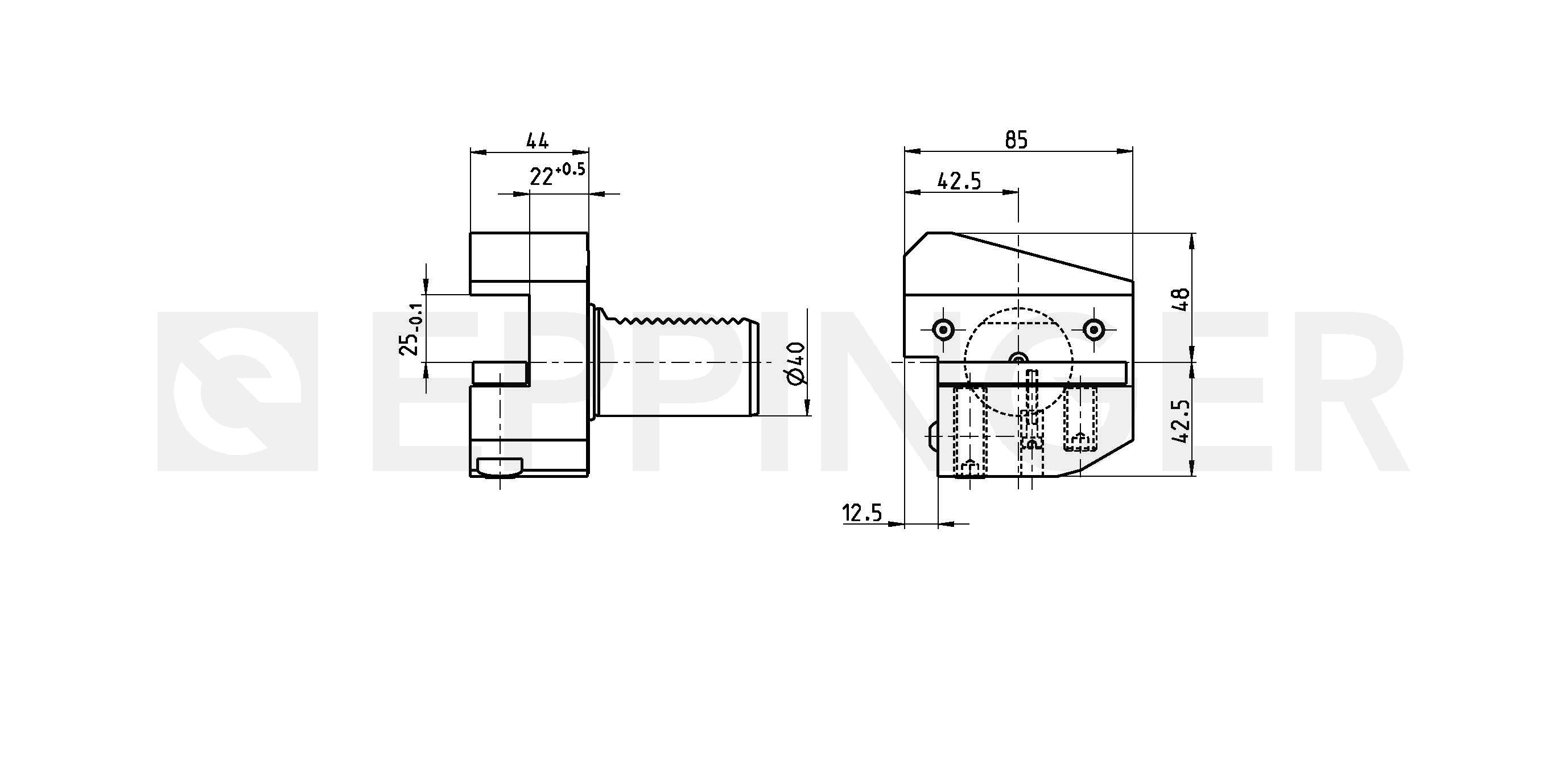 Rectangular transverse tool holder overhead,left hand, short, Type B4 DIN 69880-B4-40x25x44