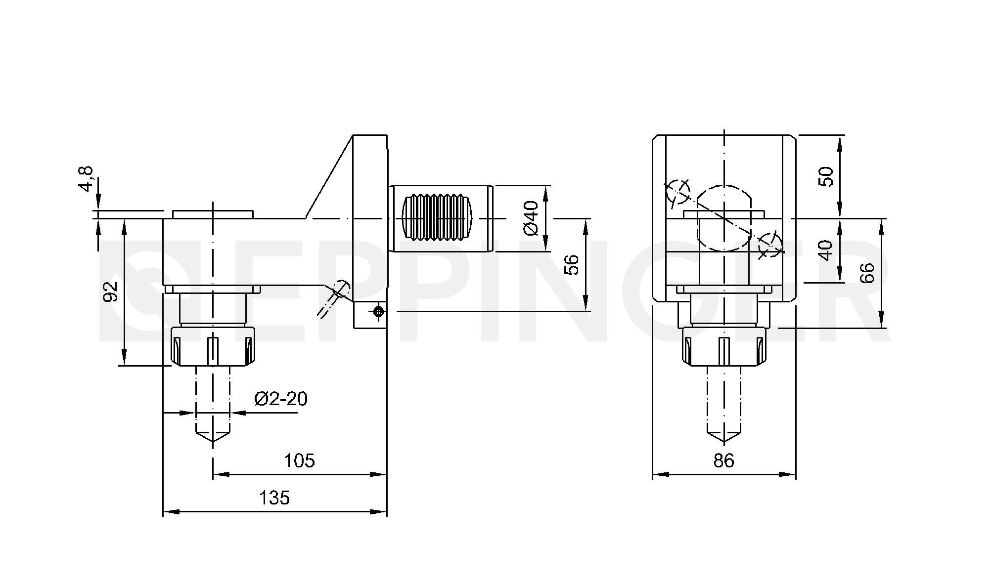 Drill holder, angular, left hand-right hand collet chuck, ER32, external and central coolant supply