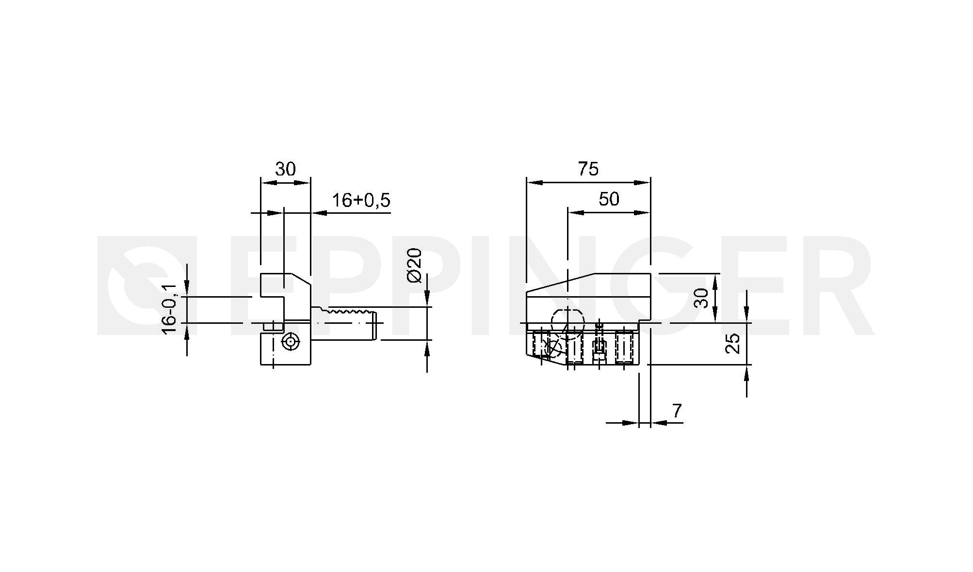 Rectangular transverse tool holder, overhead, right hand, long, Type B7 DIN 69880-B7-20x16x30