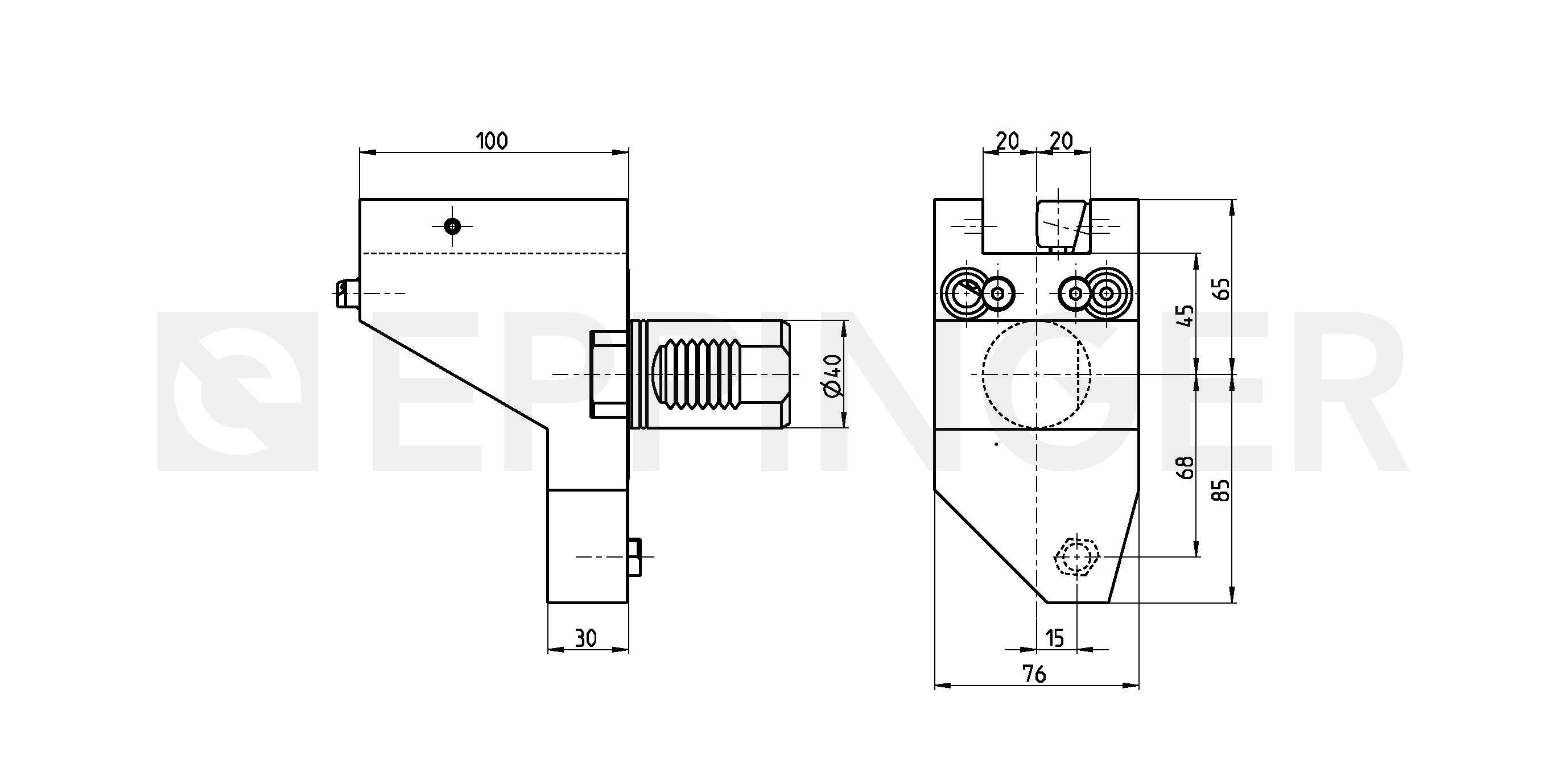 Tool holder, straight, left hand offset rectangular transverse, external and central coolant supply