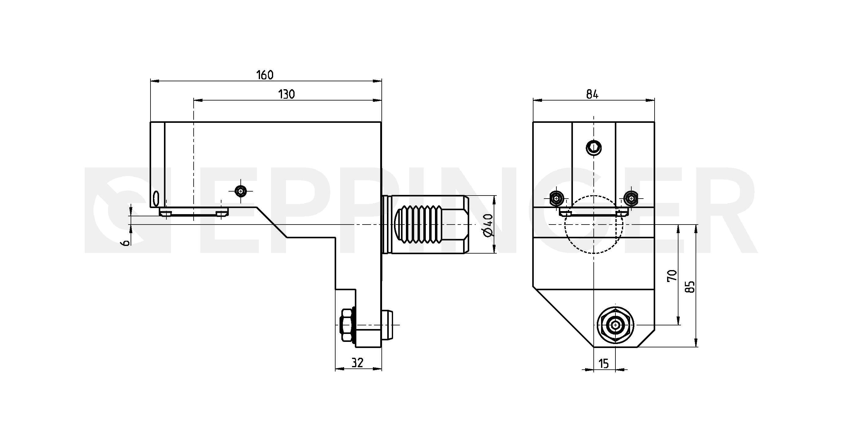 Tool holder, angular adjustable alignment pin quick change, EPPINGER PSC 40, RH external and central coolant supply